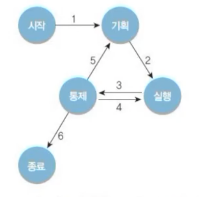 프로젝트 목표 설정, 목표 달성을 위한 활돌 계획과 예산, 인력, 자원 등의 계획수립
