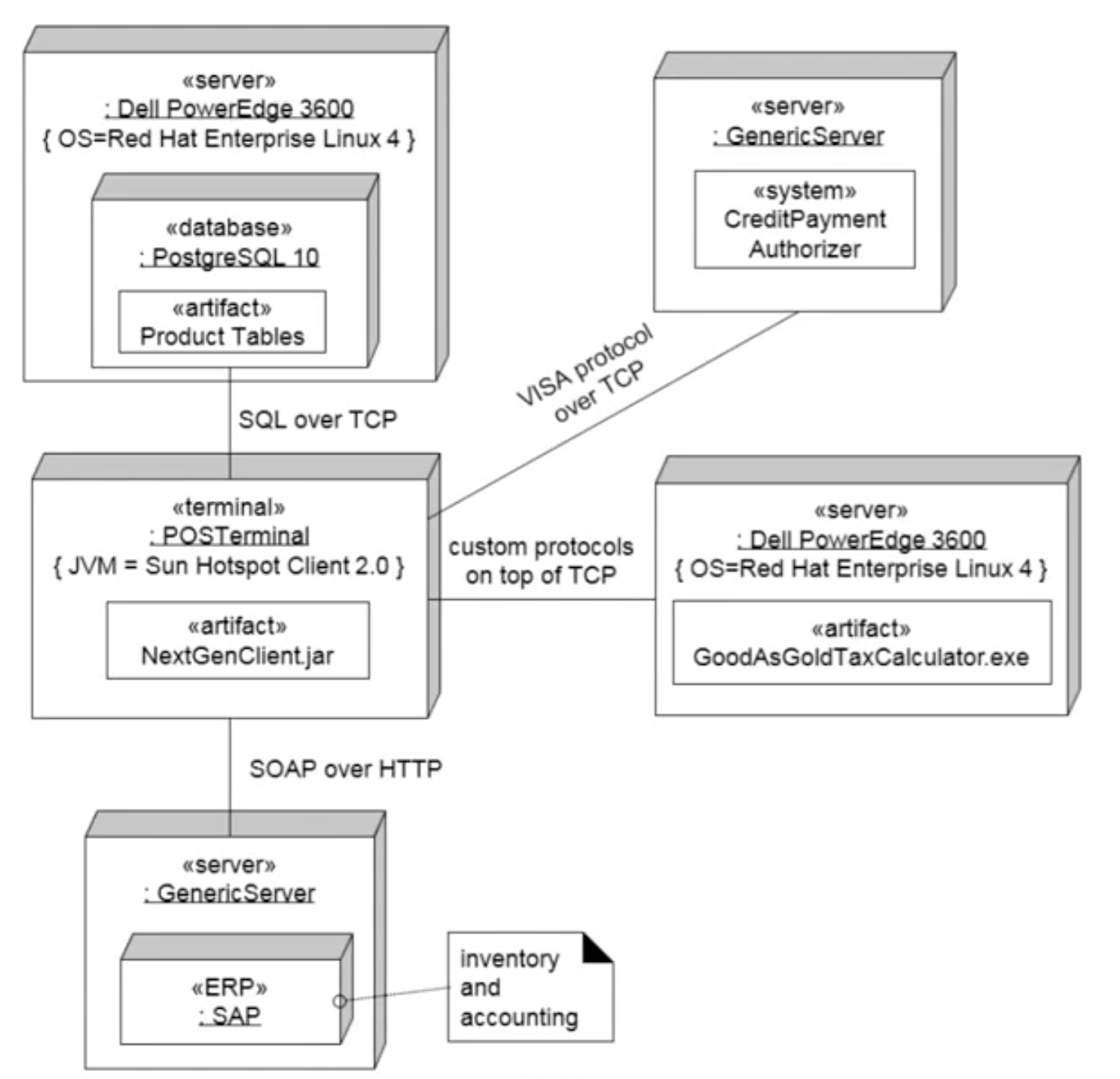 2. 소프트웨어 요소가 물리적 아키텍처로 배치되는 것과 네트워크로 표현되는 물리적 요소 간의 통신을 보여줌