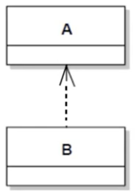 의존관계(약한 의존관계): 점선, 열린 삼각형