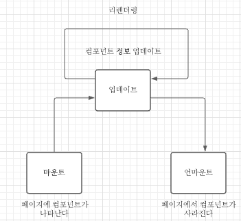 모든 리엑트의 컴포넌트에서 라이프 사이클(수명 주기)가 존재한다. 컴포넌트의 수명은 페이지에 렌더링 되기 전인 준비 과정에서 시작해 페이지에서 사라질때 끝난다.