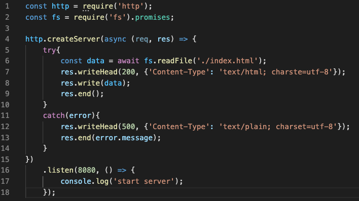 fs모듈을 사용하면 html파일을 서버에서 전송할 수 있다