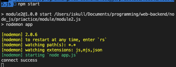 "start": "nodemon [파일명]"을 추가해 주면 npm start를 사용할 수 있다.