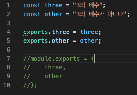 위 예시에서 module.exports를 사용했지만 사실 다른 방법으로도 모듈화를 할 수 있다.