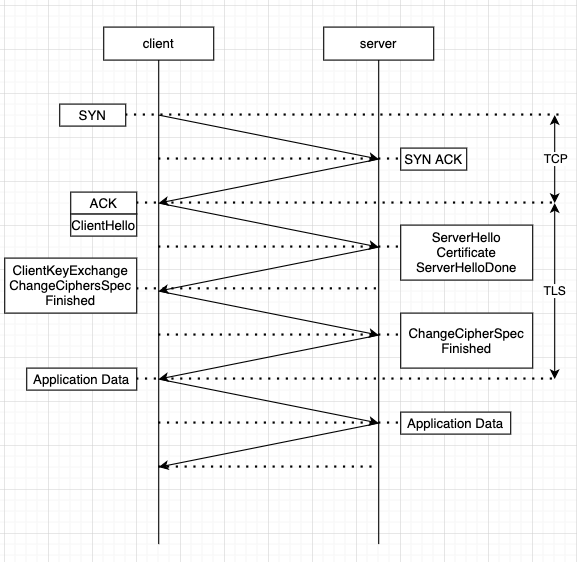 HTTP가 사용되면, 일련의 핸드셰이크들이 실행된다. 초기 요청은 인증을 위해 서버에 보내진다. 서버가 해당 서버는 올바른 서버라는 응답을 보내게 되면 클라이언트는 client hello를 요청한다. 이때 이 커뮤니케이션은 암호화 된다. 이는 암호화 키를 교환하기 위해서이다. 이 시점에서 암호문 해독에 대한 커뮤니케이션을 할 수 있다. 이런 초기 핸드셰이크 과정은 수 밀리세컨드 안에 수행된다.