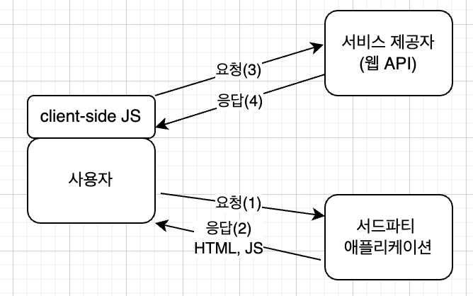 일반적으로 OAuth라고 하면 위에서 설명한 '서버사이드의 웹 API 호출과 권한' 설명한거 처럼 서드파티 애플리케이션이 사용자의 권한으로 서비스 제공자의 웹 API를 사용하는 것이 기본 시나리오다. OAuth 2.0에서는 클라이언트 사이드 js에서도 사용할 수 있는 사용자 에이전트 플로가 추가됐다.
