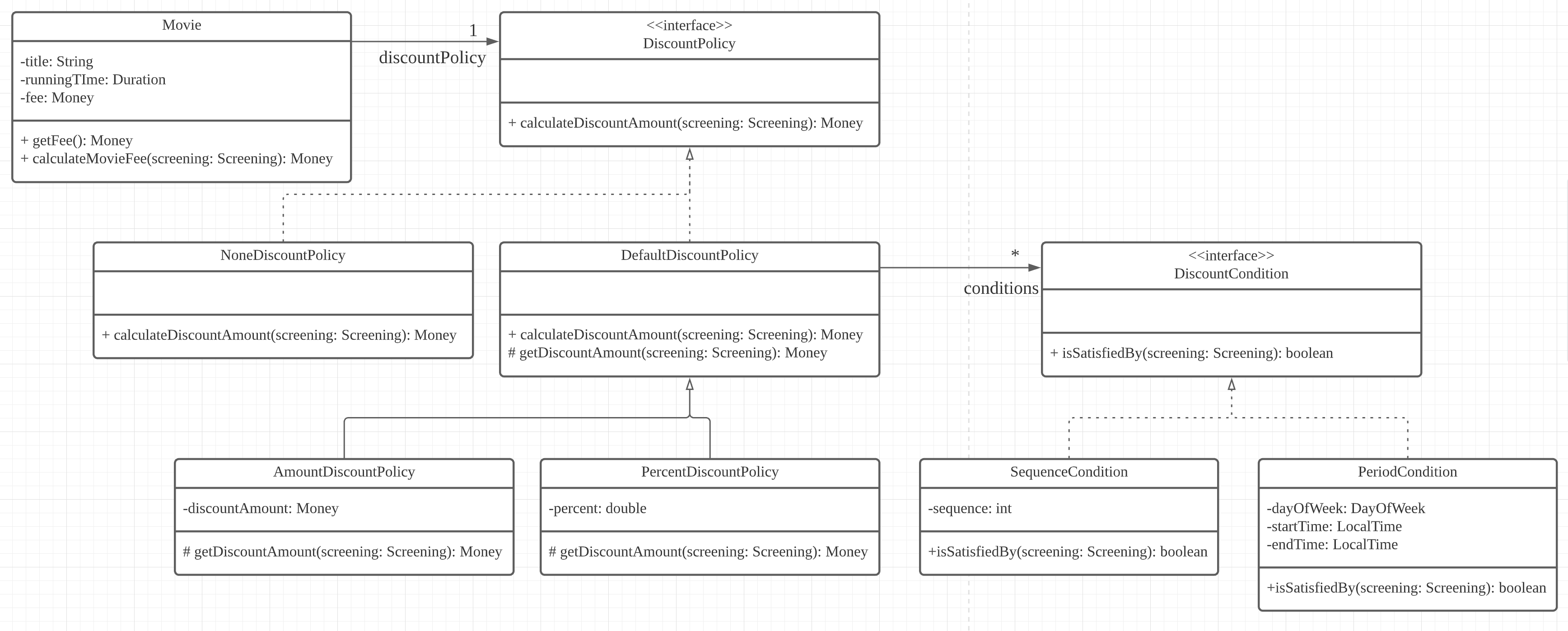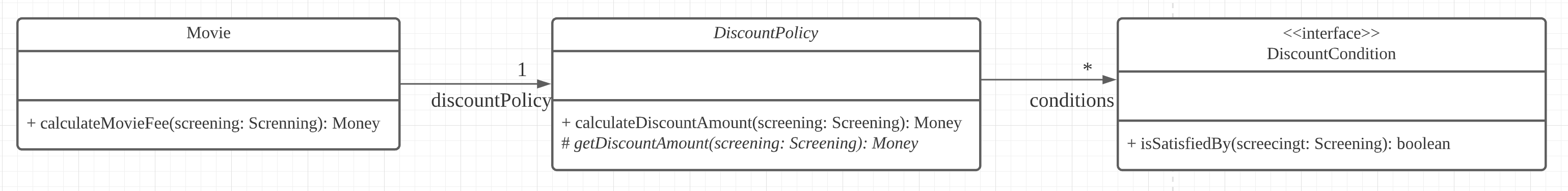 Movie 클래스와 DiscountPolicy의 의존 관계는 다음과 같다.