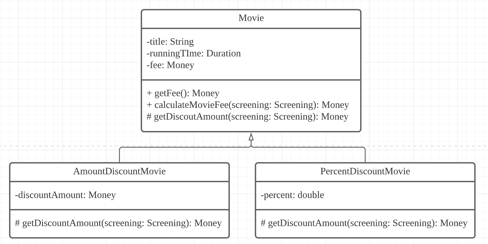 위의 Movie 클래스를 보면 discount policy의 종류를 판단하는 코드가 없다. 이는 상속과 다형성 때문이다.