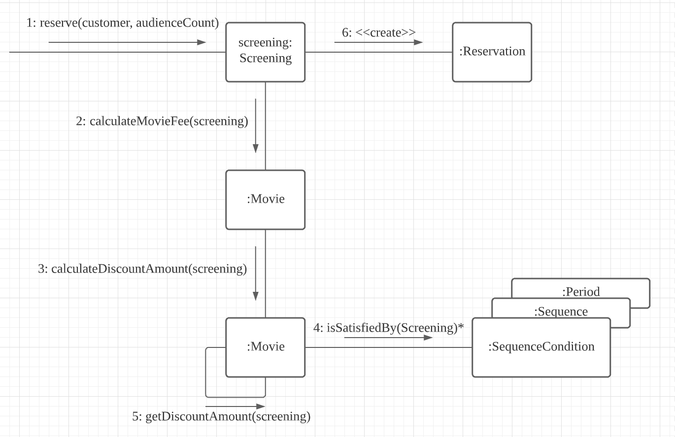 아래의 그림은 영화 예매 시스템에서 객체들이 상호작용 하는 것을 시각화 한것이다.