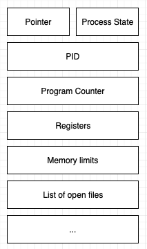 프로세스가 생성된다는 것은 프로세스가 운영체제에 의해 하나의 관리 개체로 등록됨을 의미한다. 이때 프로세스 관리를 위해 모든 정보를 기록하는 표를 PCB라 한다. PCB의 수는 생성 가능한 최대 프로세스 수를 의미한다. PCB는 위에서 언급된 속성들을 저장한다.