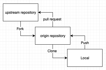 어떤 저장소 A가 있다고 해보자. 이 저장소를 내 깃허브에 fork하고 fork한 저장소를 local에 clone받는다 해보자. 그러면 다음과 같은 관계가 형성된다.