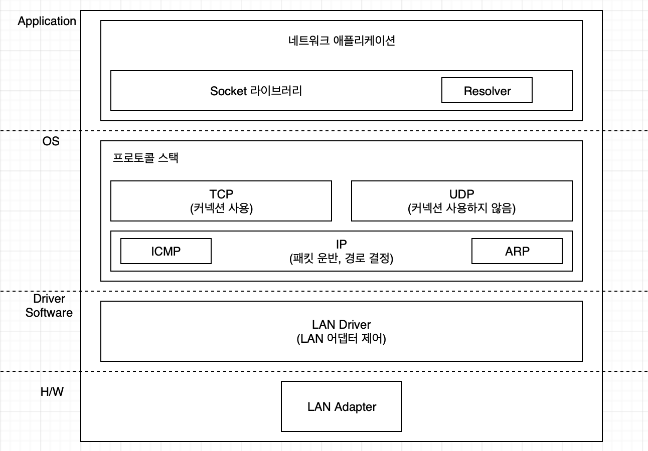 네트워크를 통해 데이터를 송수신하는 컴퓨터는 다음과 같이 계층을 나눌 수 있다.