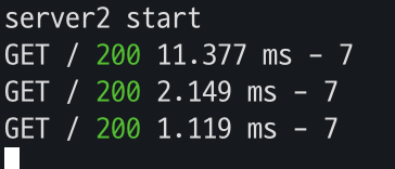 Nginx 설정이 중점이므로 express로 정말 간단한 서버 두대만 띄웠다. 코드는 다음과 같다.