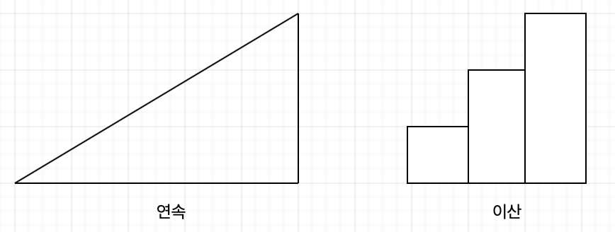 아날로그와 디지털의 차이는 연속과 이산에 있다. 연속은 끊어진 자국이 없는 상태, 이산은 끊어진 자국이 있는 상태이다.
