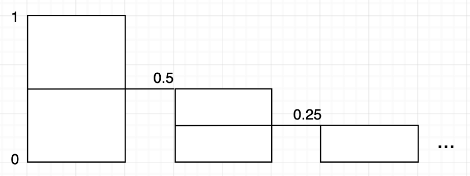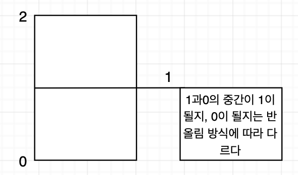 이제 해상도가 1인 이산인 숫자에서 중간 숫자를 찾는 과정을 도식화하면 다음과 같다.