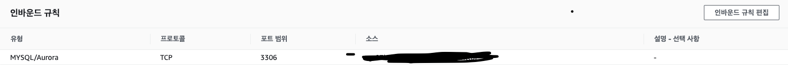 또 한 RDS의 인바운드 규칙을 다음과 같이 설정해야한다.