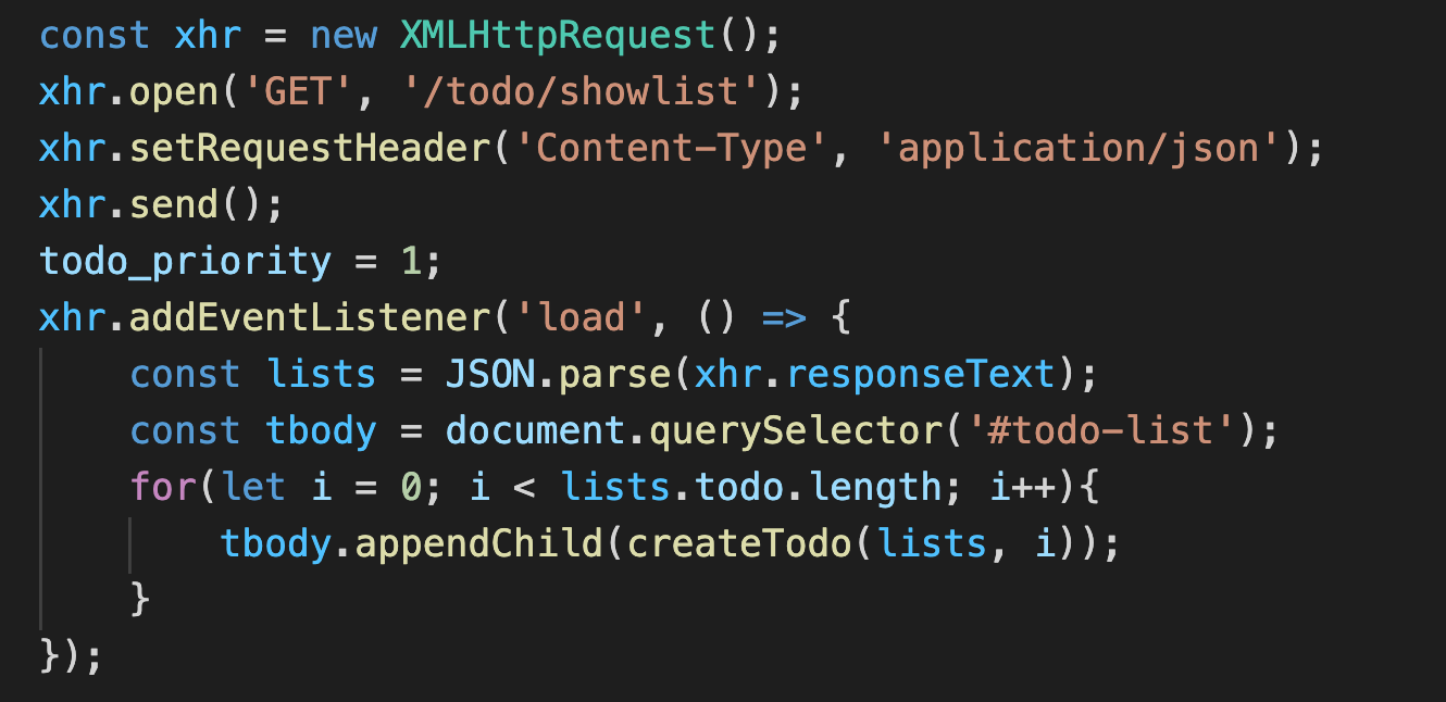 AJAX의 경우 fetch API를 사용해도 되지만 AJAX를 이번 프로젝트에서 처음 사용해보기 때문에 바닐라 js에 있는 XMLHttpRequest를 사용했다.