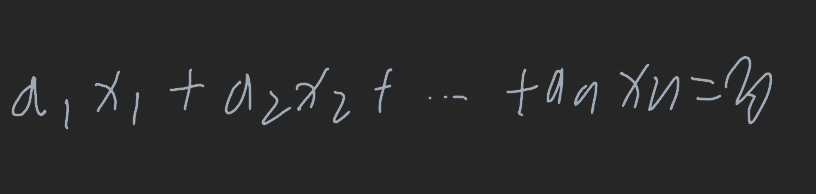 n개의 변수 x1, x2,.....,xn의 일차 방정식은 다음과 같이 표현된다.