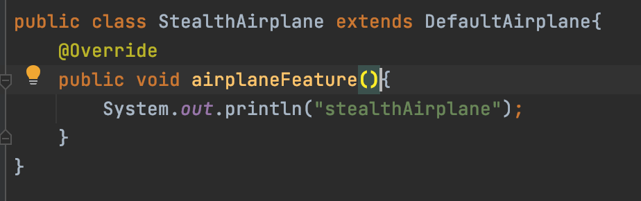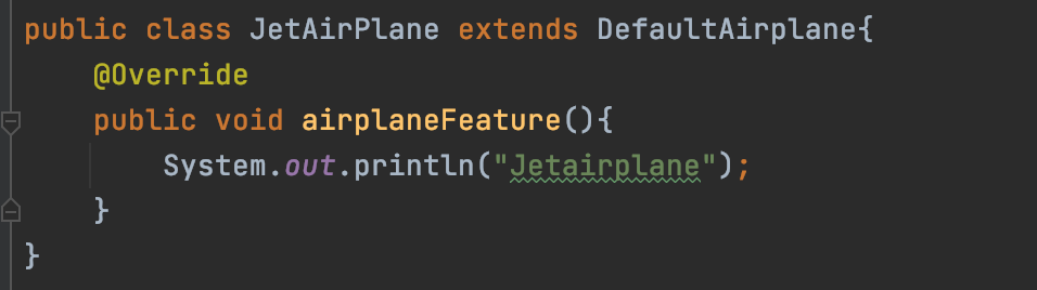 위의 코드를 보면 jetAirPlane, StealthAirplane은 그들의 부모 클래스인 DefaultAirplane인터페이스에서 실행된다. 따라서 기능을 부모 클래스의 변경 없이 수정할 수 있다.