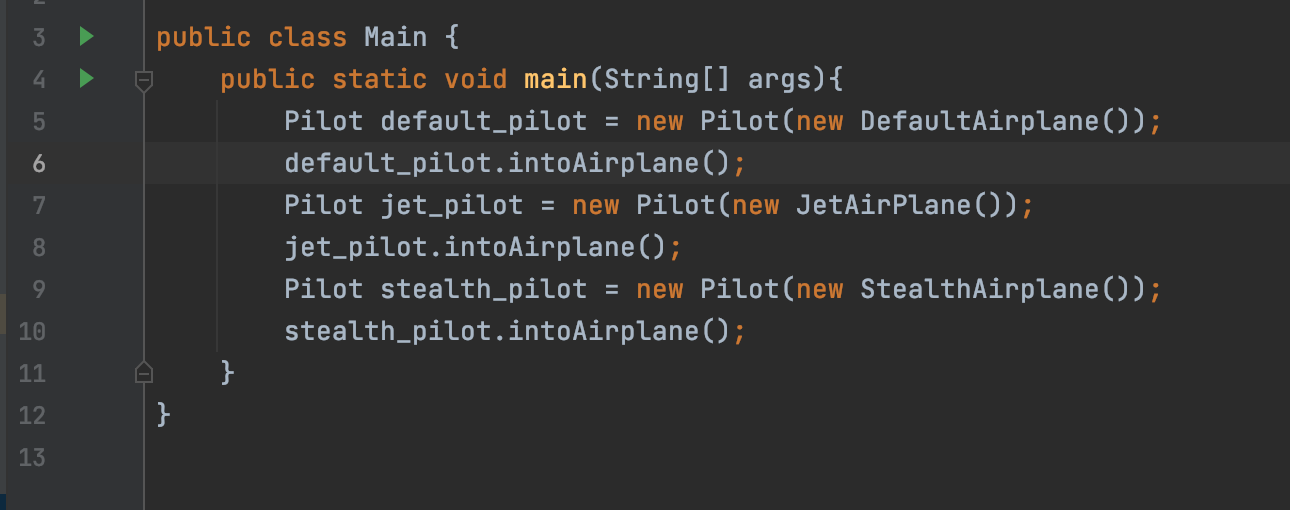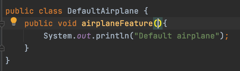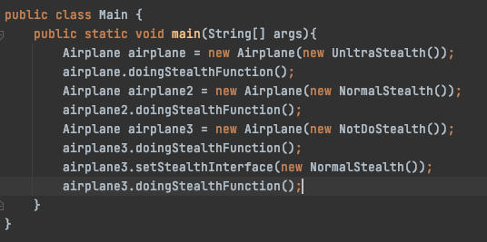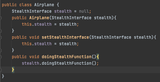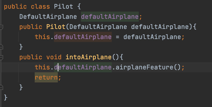 defaultAirplane 변수의 인터페이스인 DefaultAirplane의 실제 로직 구현은 DefaultAirplane클래스 에게 맡기겠다는 의미이다.