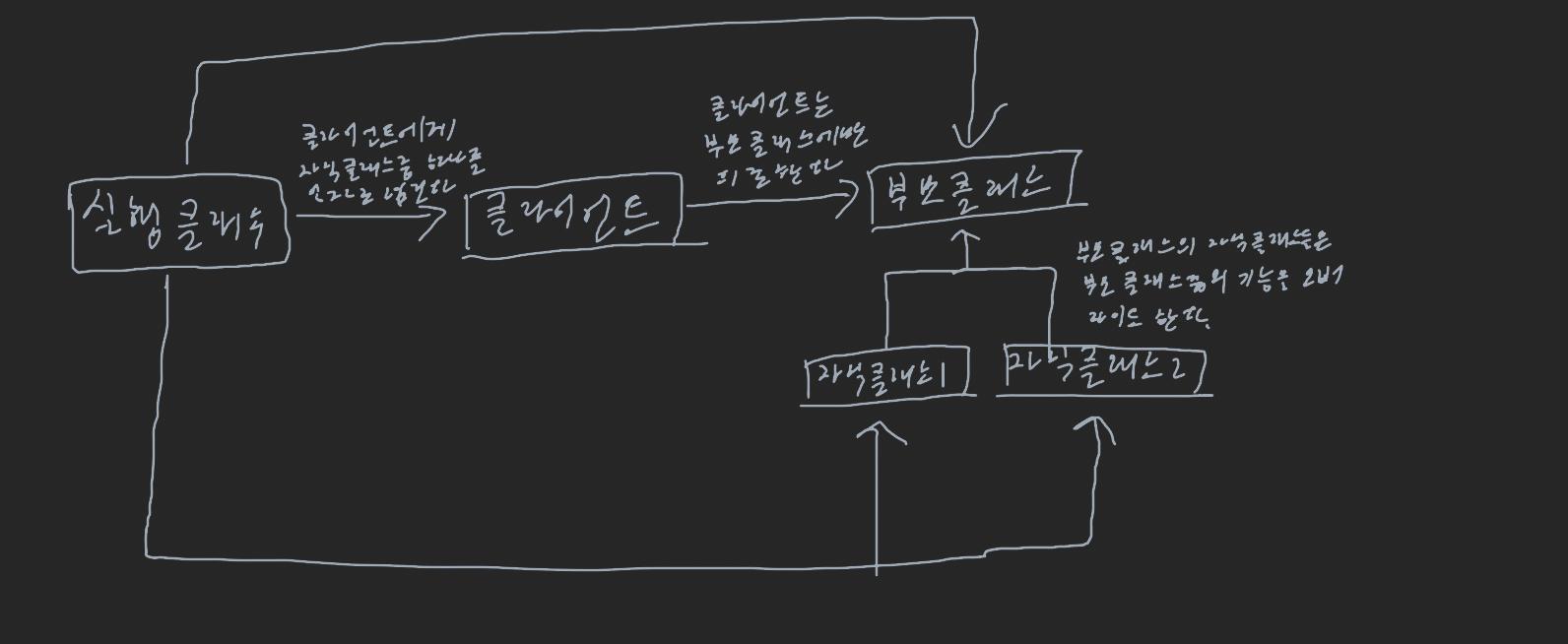 3. 클라이언트 클래스에서는 쓰고싶은 클래스 그룹의 부모 클래스만 의존하고 자식 클래스를 인자로 넘겨받아 저장한다.
